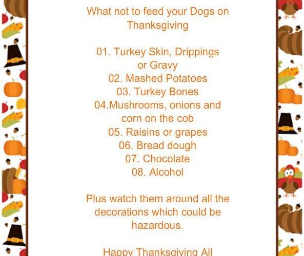 Phew I am exhausted with all this barking and now going to chew a bone but please keep us safe on Thanksgiving with the list below which are not good for us and of course do not drink and drive as we are waiting at home for you.