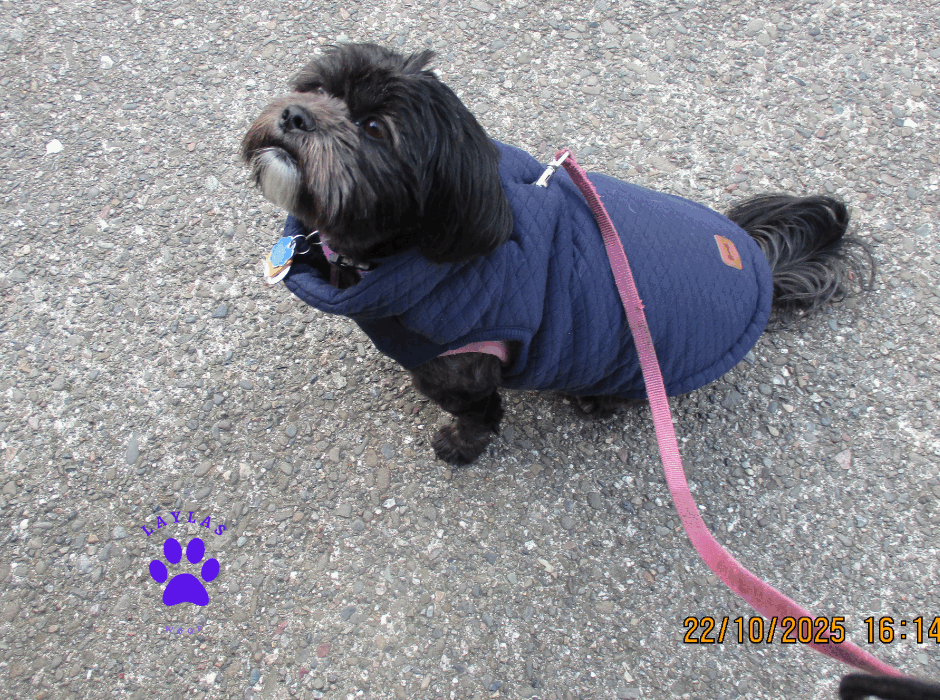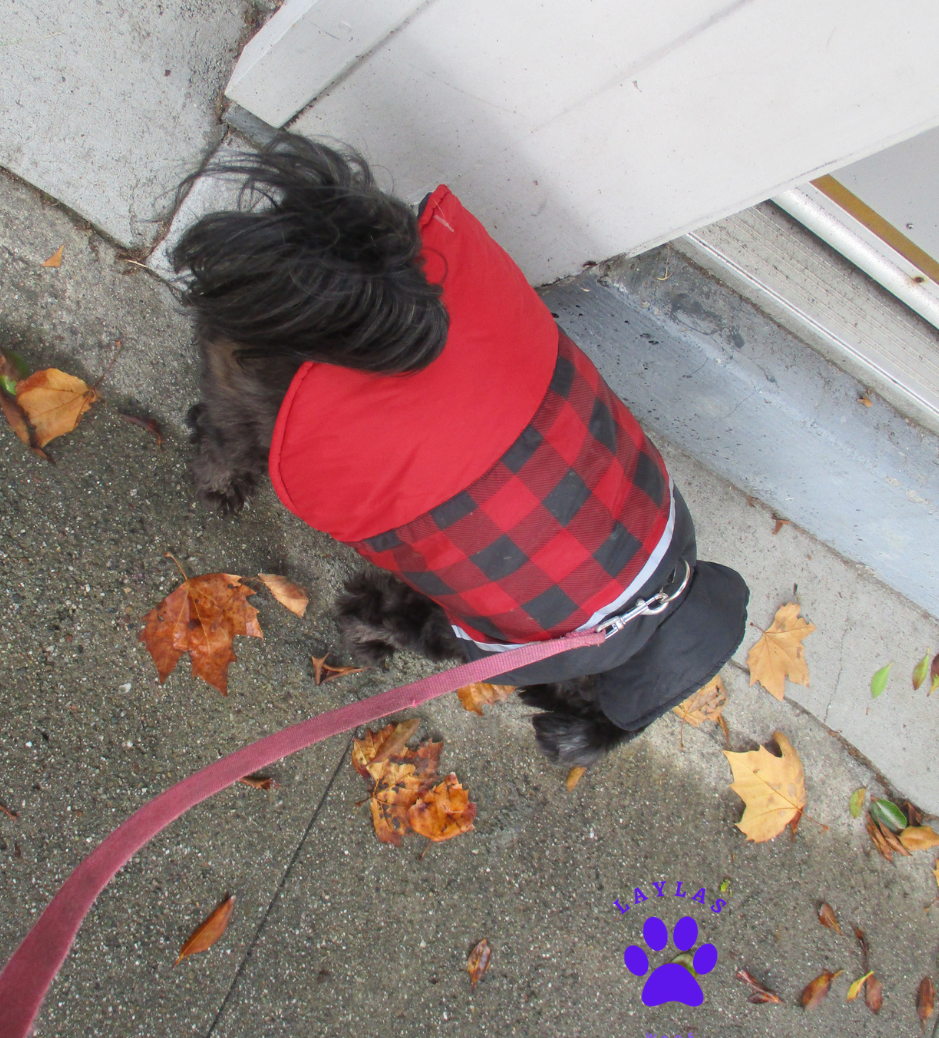 I am going for walks, wearing my raincoat, I do not like the rain but potty breaks with exercise is very important and Mom does not give in to me when I sit and refuse to walk, she wins on this one as she knows I am desperate to potty so will walk and do it once we get going. I do not like pee pads and have chewed them to pieces so it is not worth putting them on the floor. Plus walking for Mom is really good also so off we go.