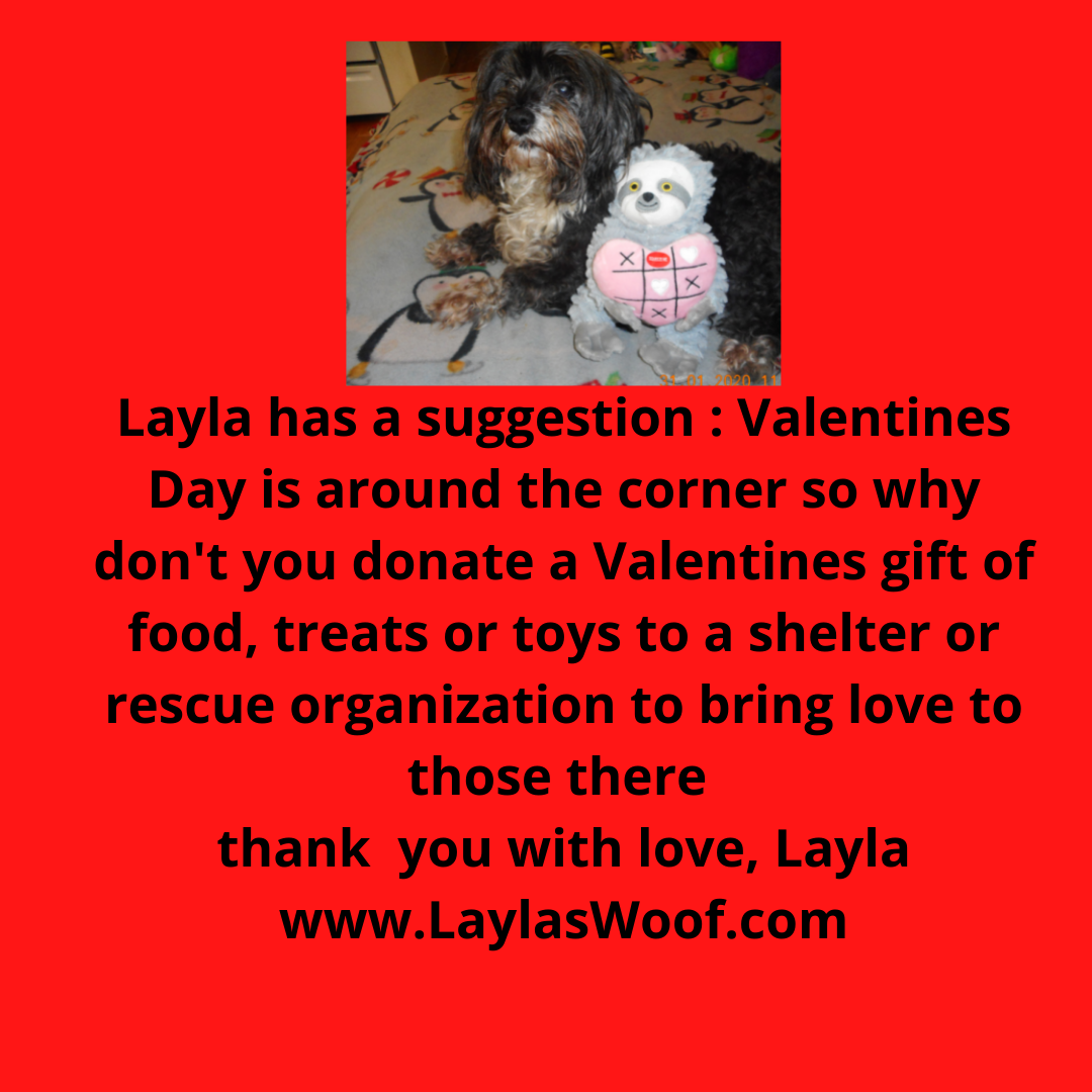 Mom and I had a long chat this week about Valentines Day and how I do not need anything as I am a spoiled brat but how the animals in shelters need to be loved also so we decided to put a package together of goodies and we going to drop it off at one of the shelters.